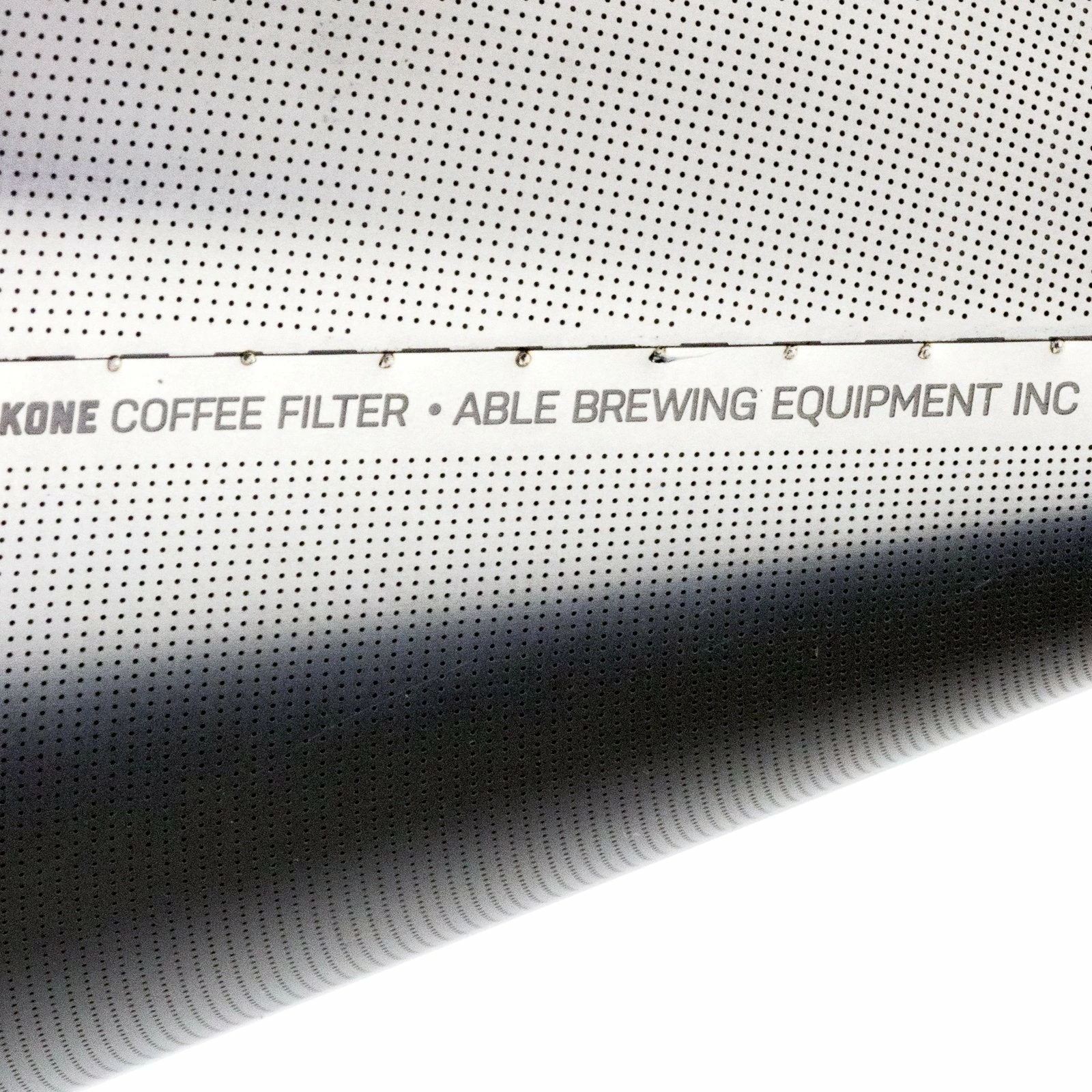 The Kone’s unique design and photochemically etched holes allow the water to flow freely through the entire filter, not just out of the end. For the Ratio Eight version, the Able team added more holes to accommodate the higher brew volumes of up to 40 ounces. The holes are round on one side and square on the other – a rare design feature that helps eliminate potential clogging.