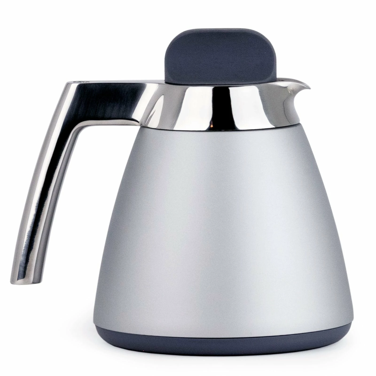 This carafe combines function, elegance, and durability. The insulated dewar body will keep your coffee hot for up to 4 hours after brewing. The 304 stainless steel handle and 18/8 stainless steel dewar body are very resistant to corrosive coffee acids and oils. The counterweighted handle makes pouring feel natural and well-balanced.