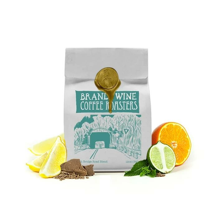 This is the Smith Bridge Road Blend brought to you by Brandywine Coffee Roasters. Coffees from Brazil, Colombia, and Costa Rica were carefully chosen and blended together. This combination of coffees create a unique harmony of notes like chocolate and roasted nuts, with a full bodied character.