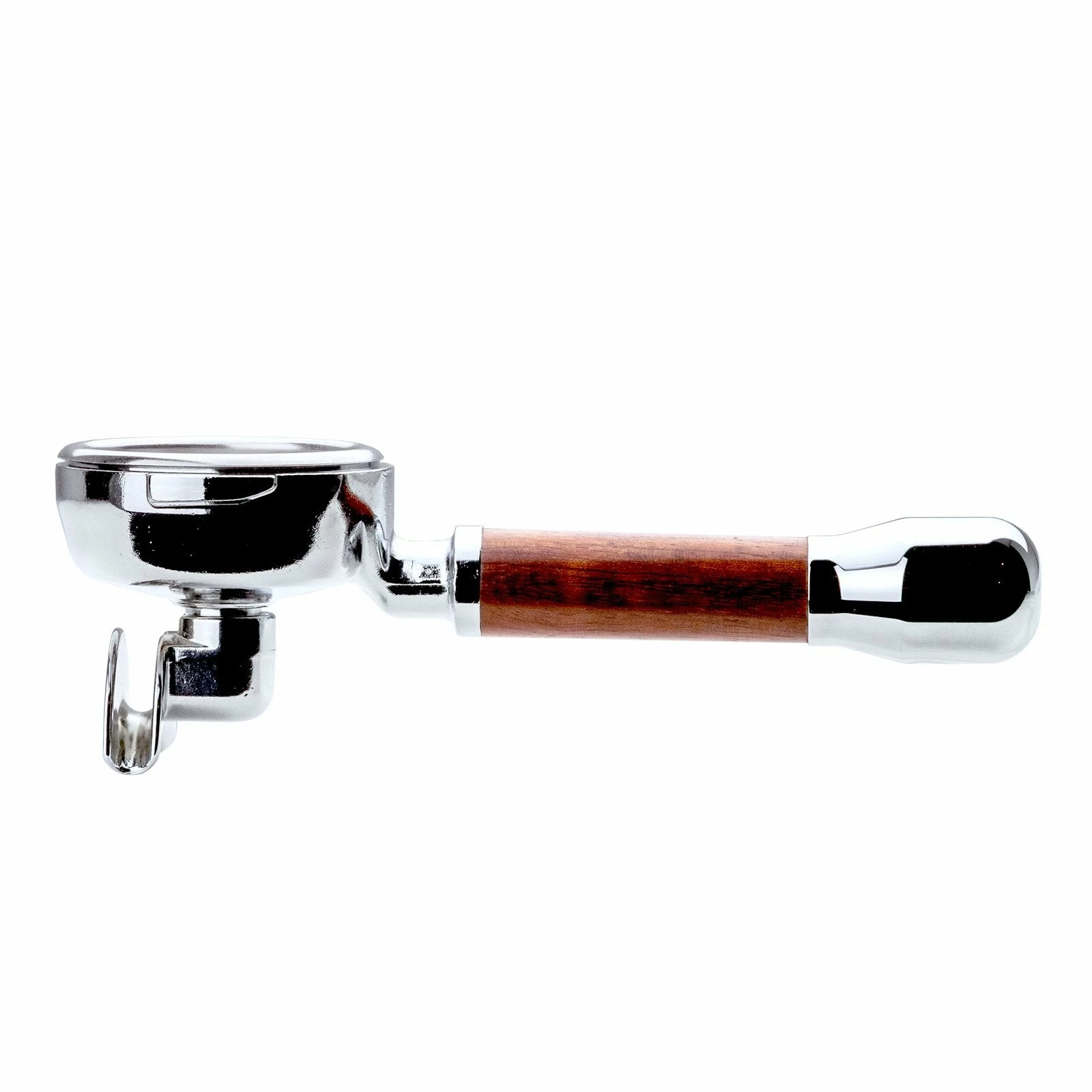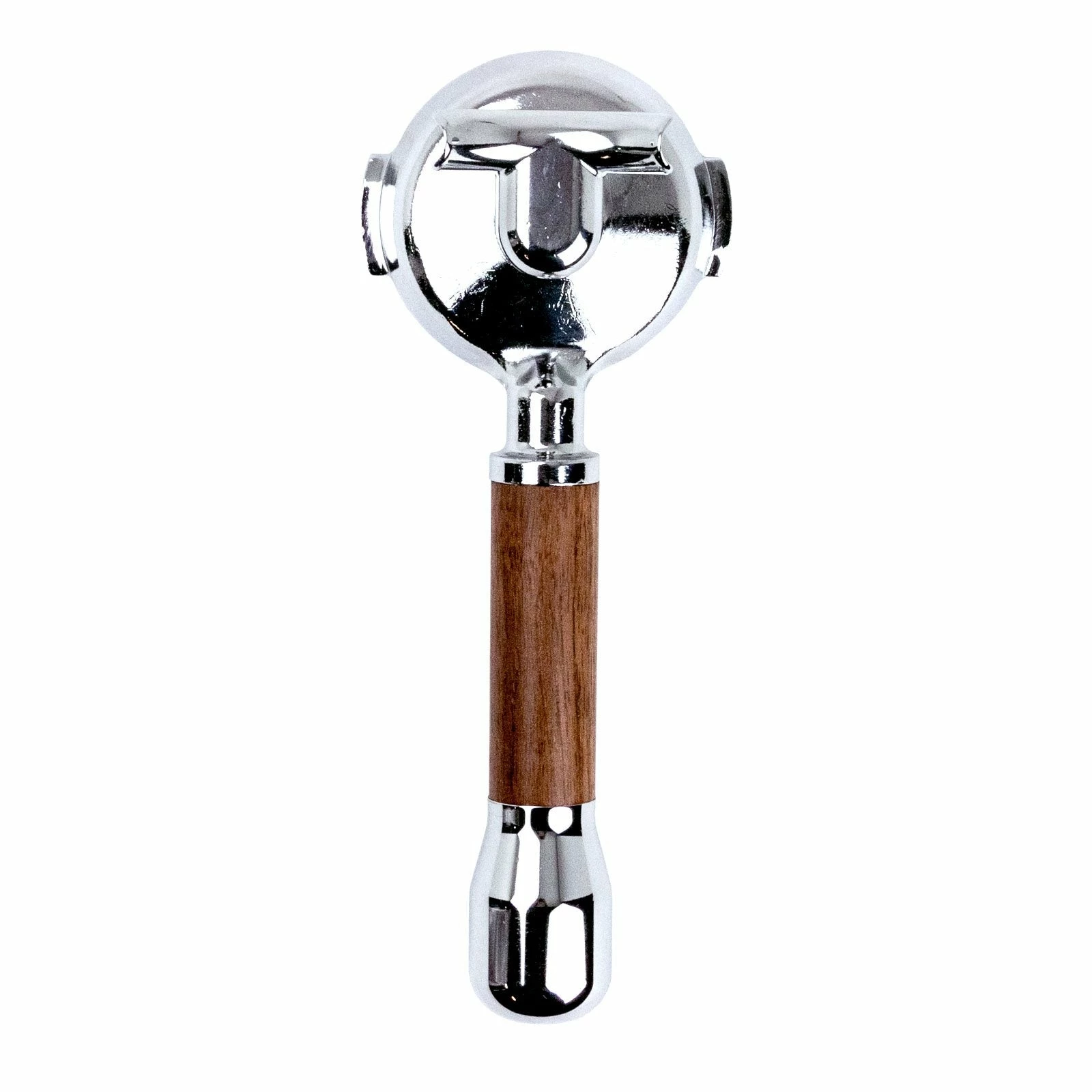 Perfectly weighted and bearing a solid chromed tip, the Clive Style 7 spouted portafilter makes an excellent upgrade to any E61 group head espresso machine, such as the LUCCA M58, Profitec Pro 700, and ECM Classika. Select your favorite wood variety and add a handsome bit of wood to contrast the gleaming stainless steel of your espresso machine.