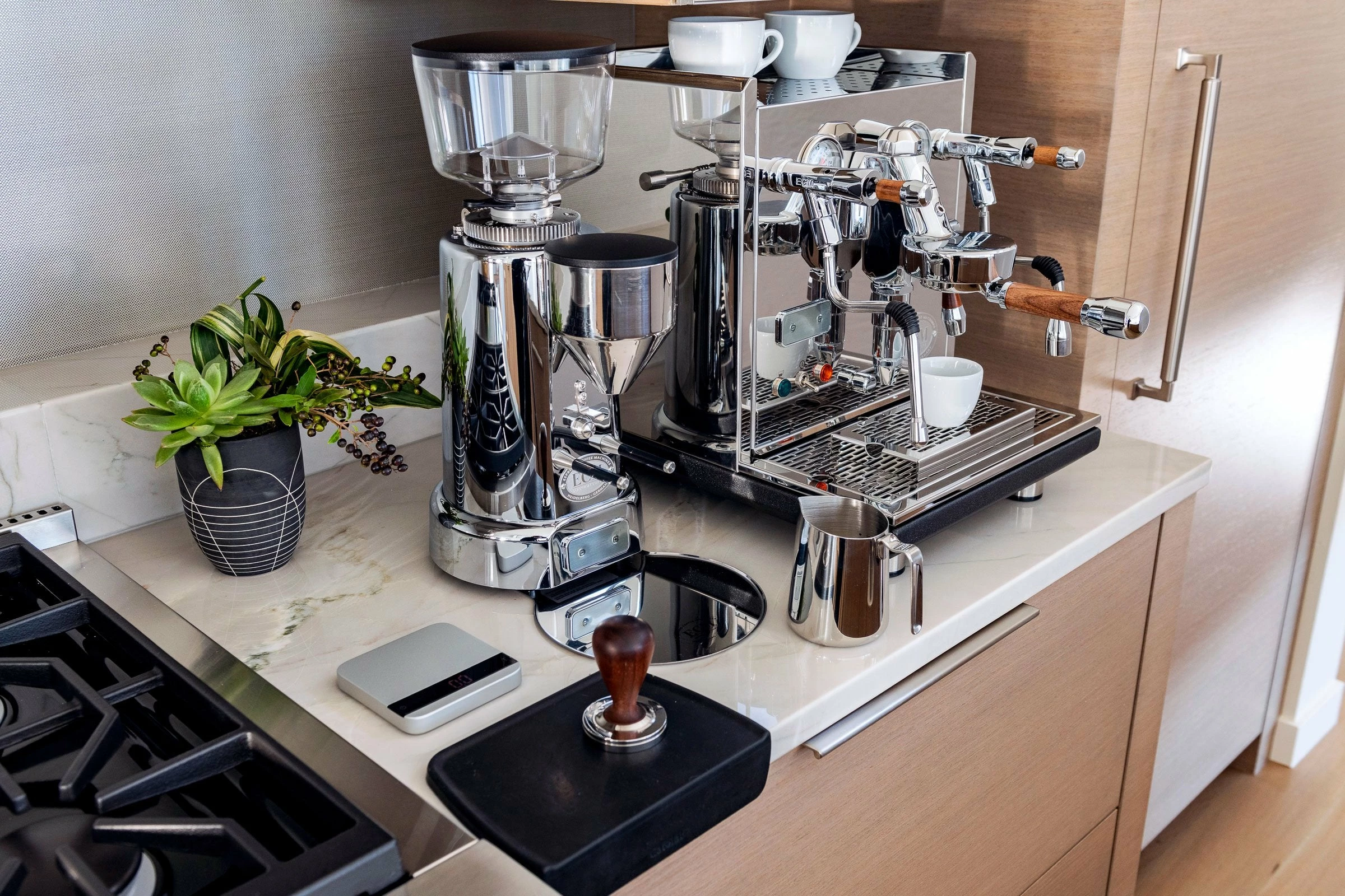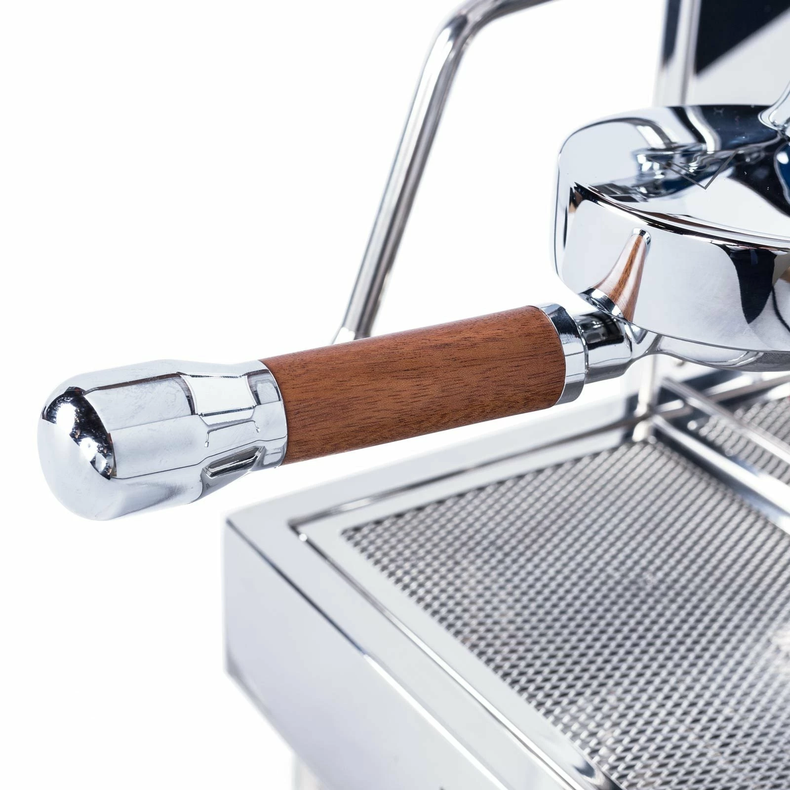 Switch out your black E61 portafilter for a custom wood handle handmade here in Portland, Oregon. Perfectly weighted and bearing a substantial chromed tip, the Clive Style 7 Bottomless Portafilter makes an excellent upgrade to any E61 group head, such as the LUCCA M58 or any Profitec, ECM, Izzo, Rocket, or Quick Mill machines.