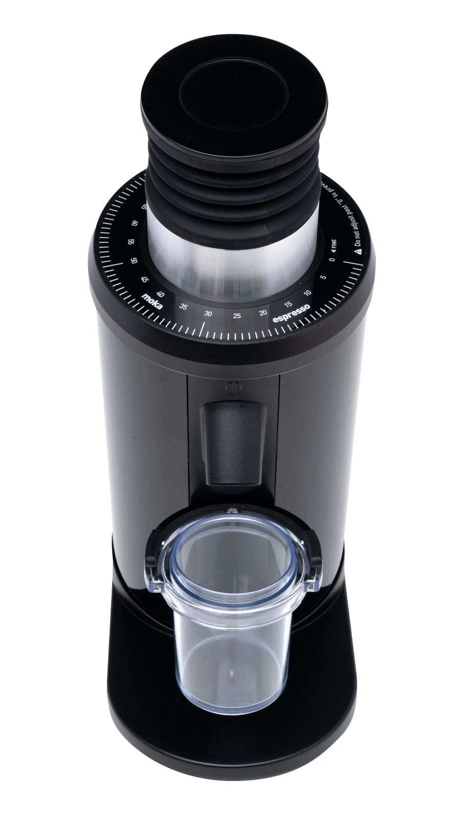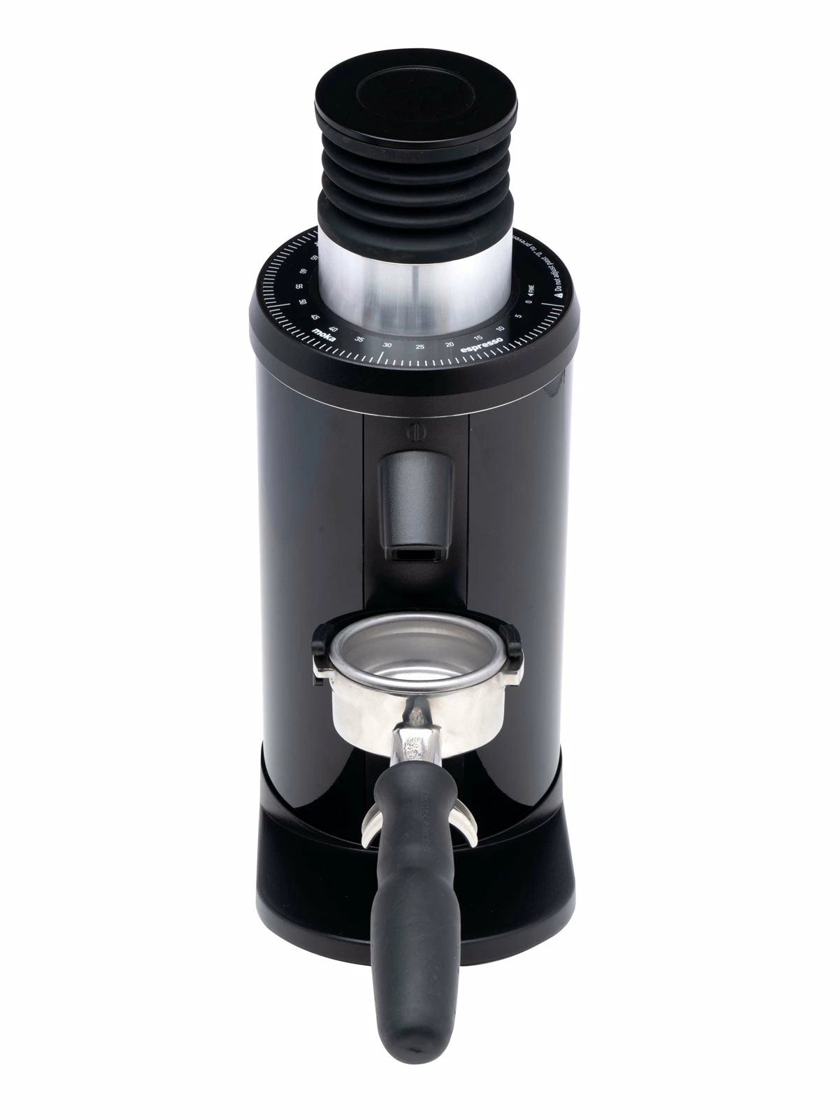 The DF64 is a competitive single-dose espresso and coffee grinder with 64mm flat steel burrs, 90 marked smooth adjustments, and a bellow to bring grind retention close to zero.