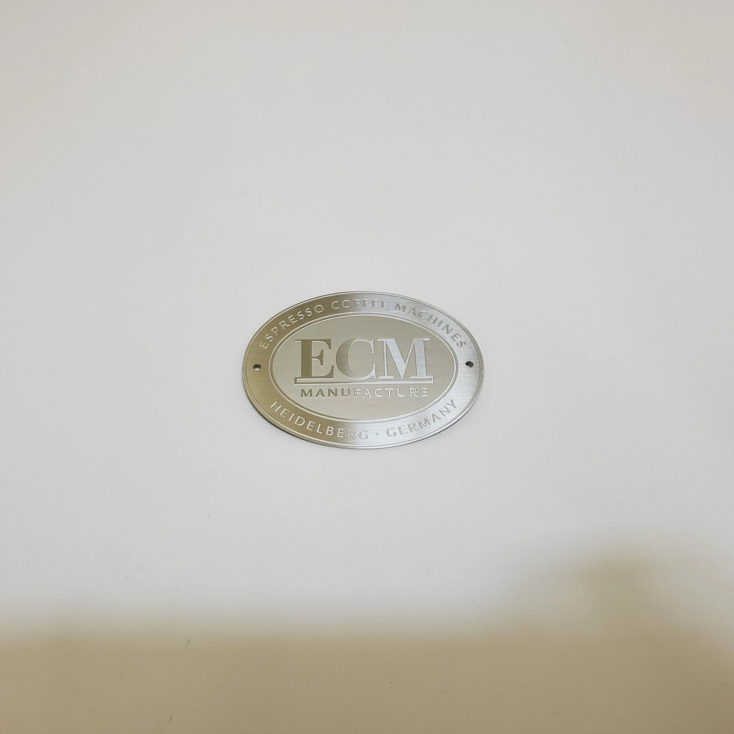 ECM emblem on the back panel of ECM Synchronika espresso machines.