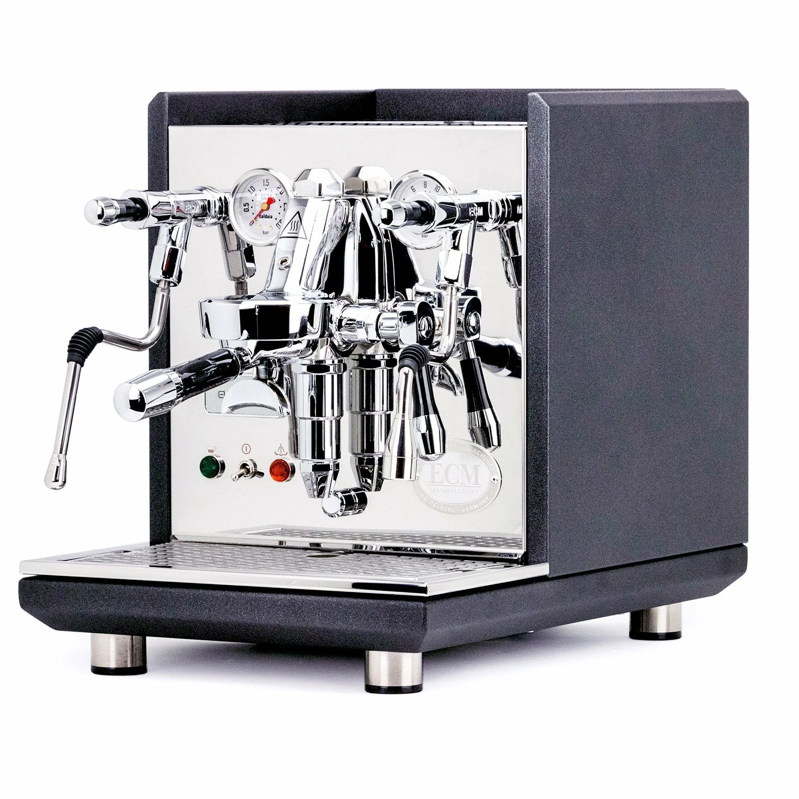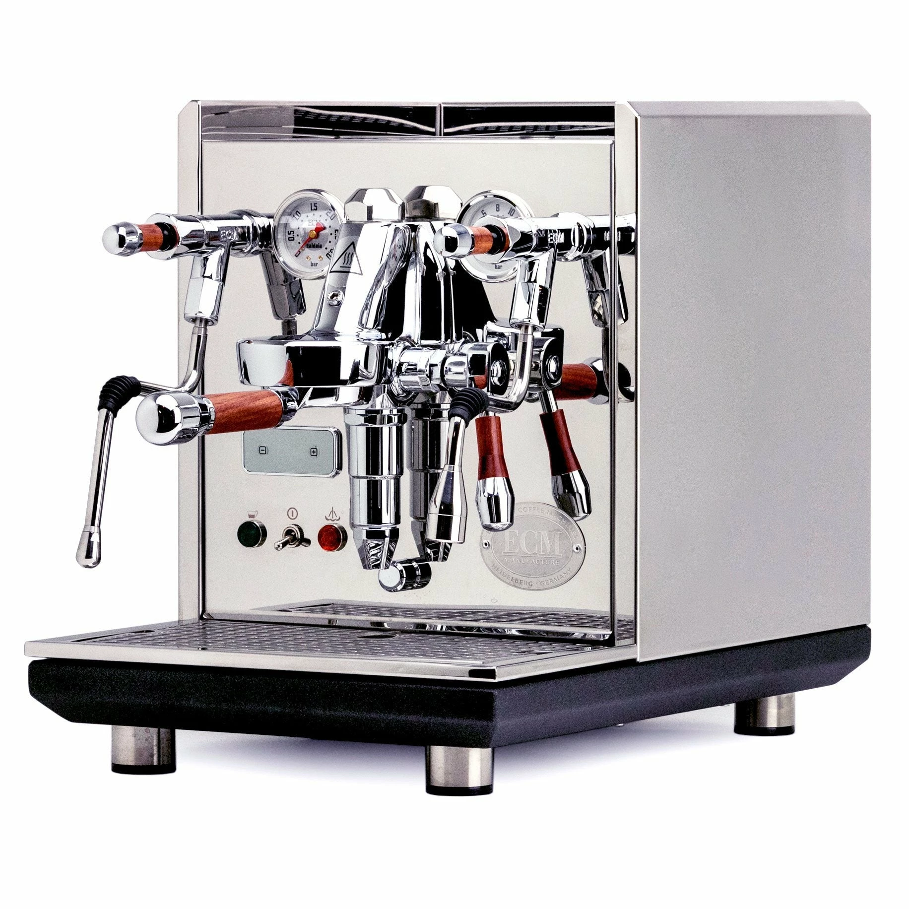 The ECM Synchronika is a German-designed and built dual boiler, rotary pump, E61 espresso machine with a built-in PID and shot timer that can be direct plumbed or run on its built-in reservoir.