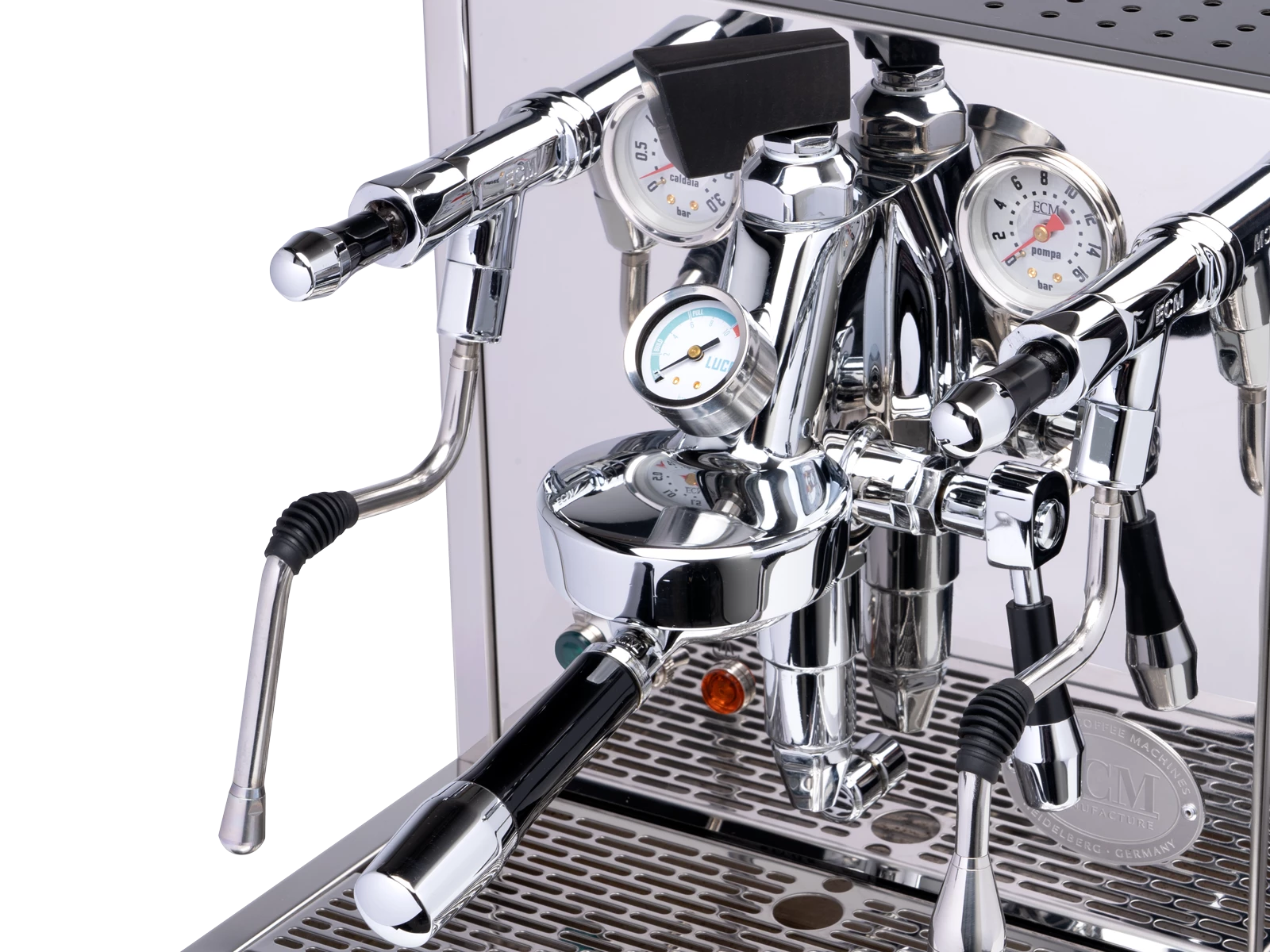 The ECM Synchronika is a German-designed and built dual boiler, rotary pump, E61 espresso machine with a built-in PID and shot timer that can be direct plumbed or run on its built-in reservoir. This unit includes the LUCCA Flow Control device pre-installed on the group head, providing an easy way to improve your extraction.