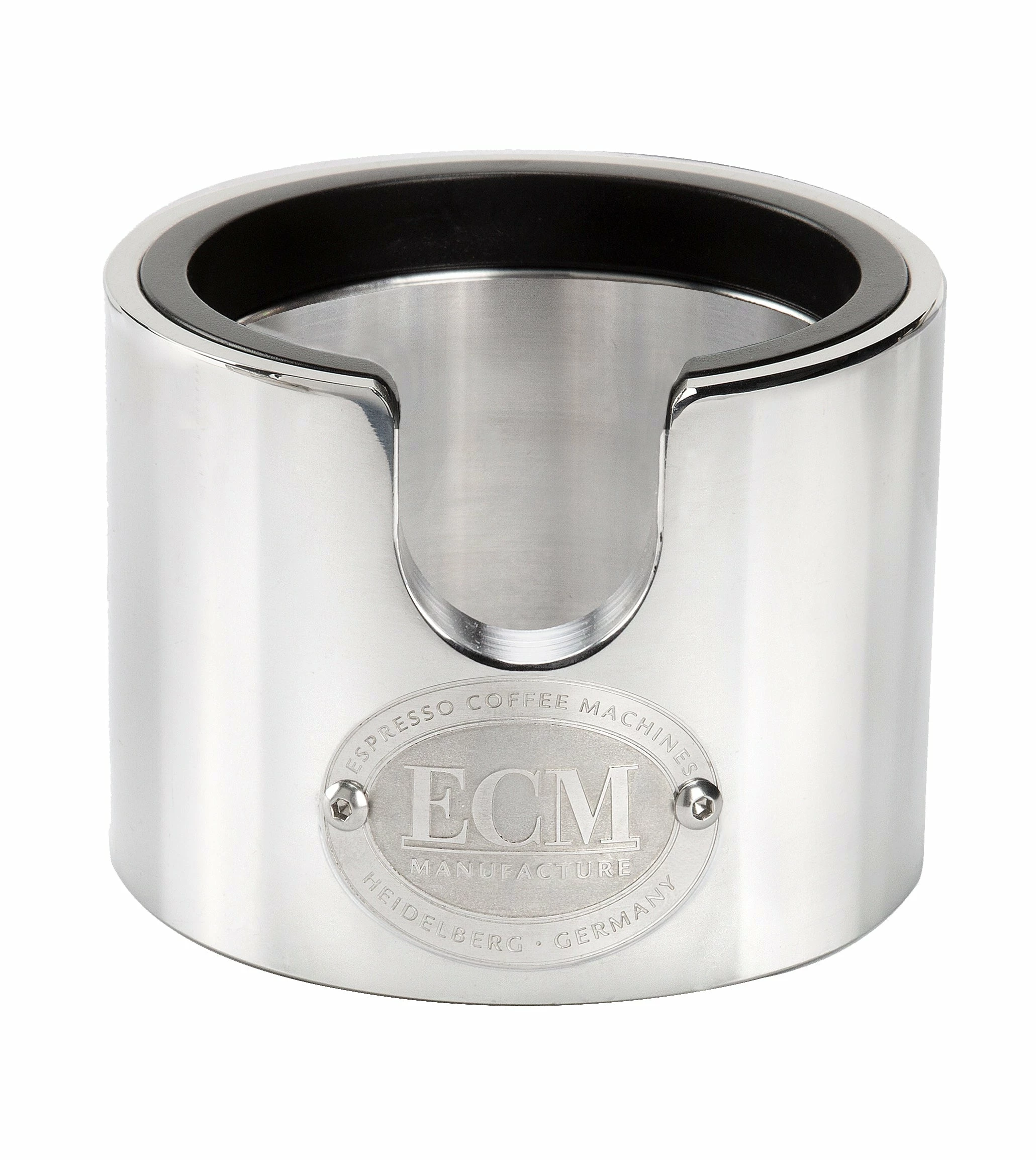 This tamping stand, pressed from polished aluminum, fits any ECM bottomless or spouted portafilter. Its rubber foot gives it a solid grip, and the beveled steel design looks brilliant alongside any ECM espresso machine.