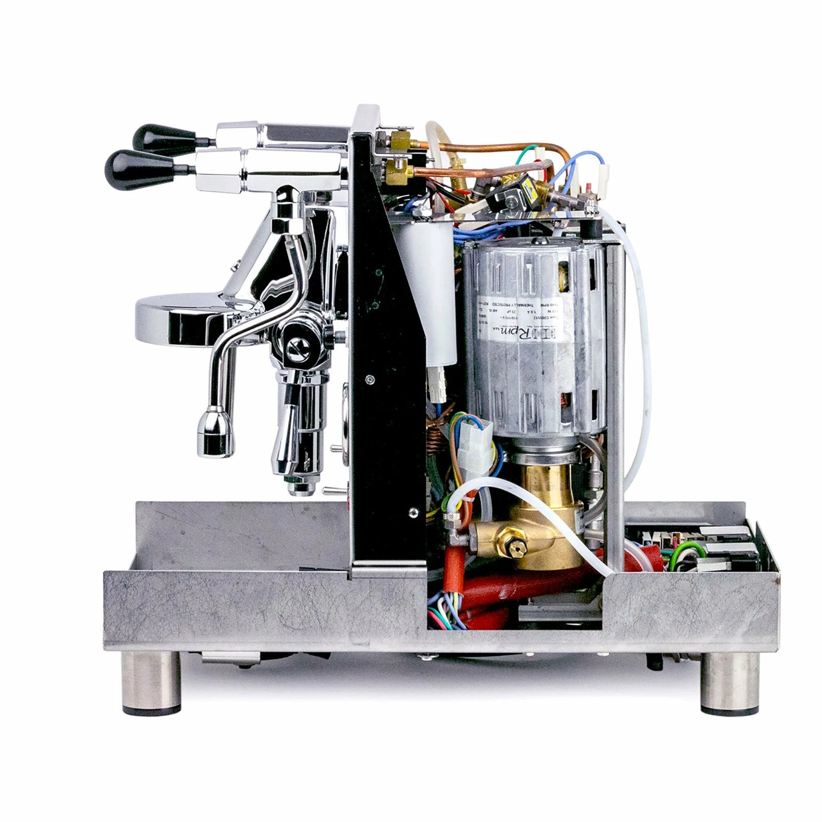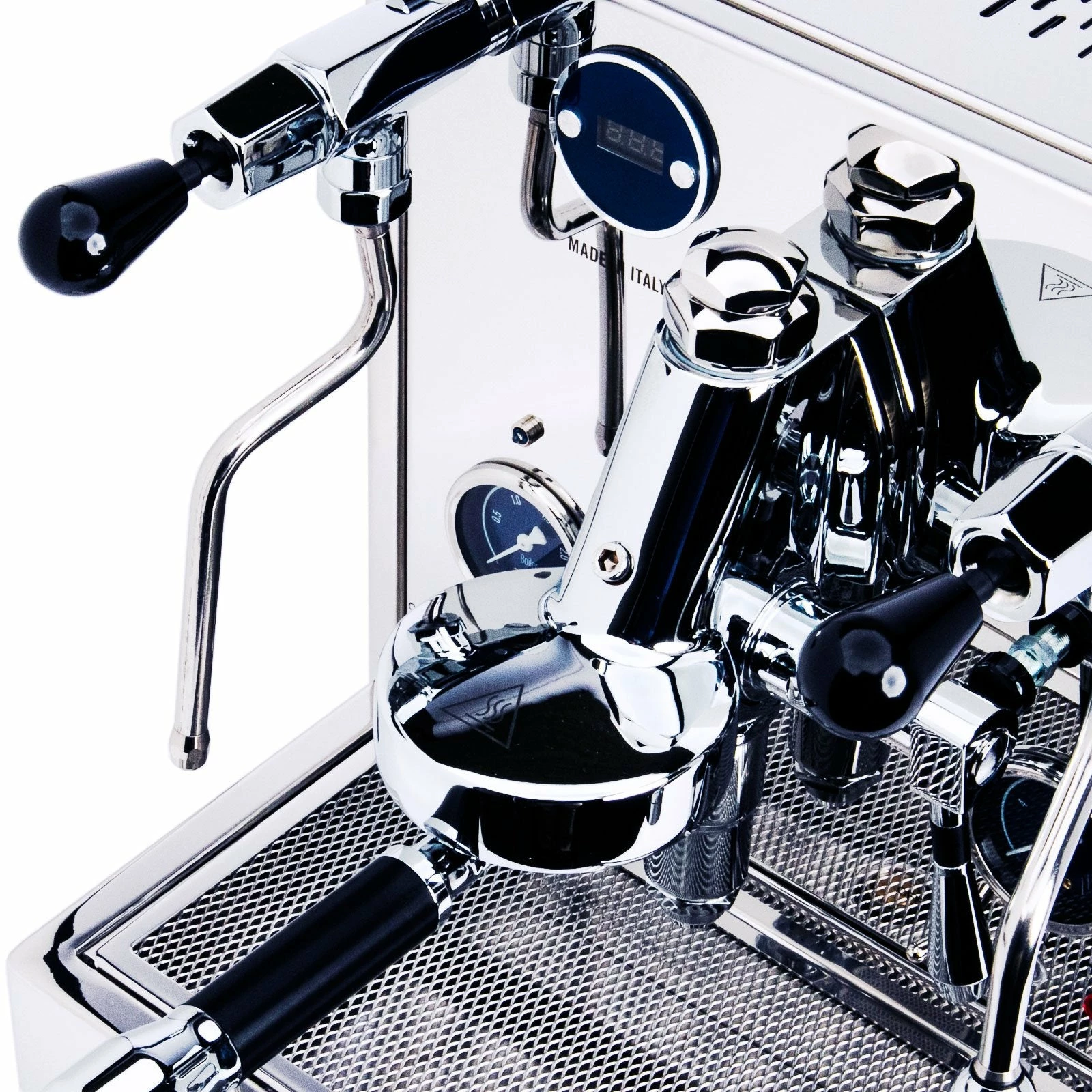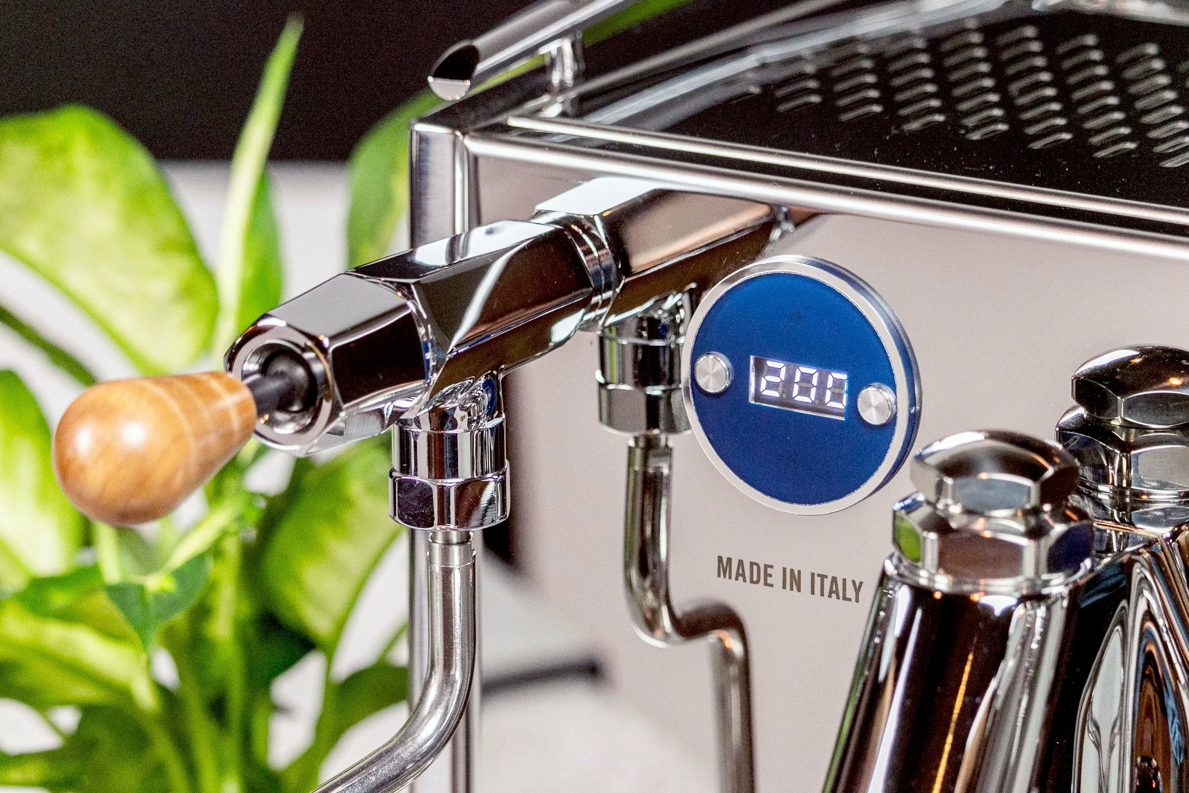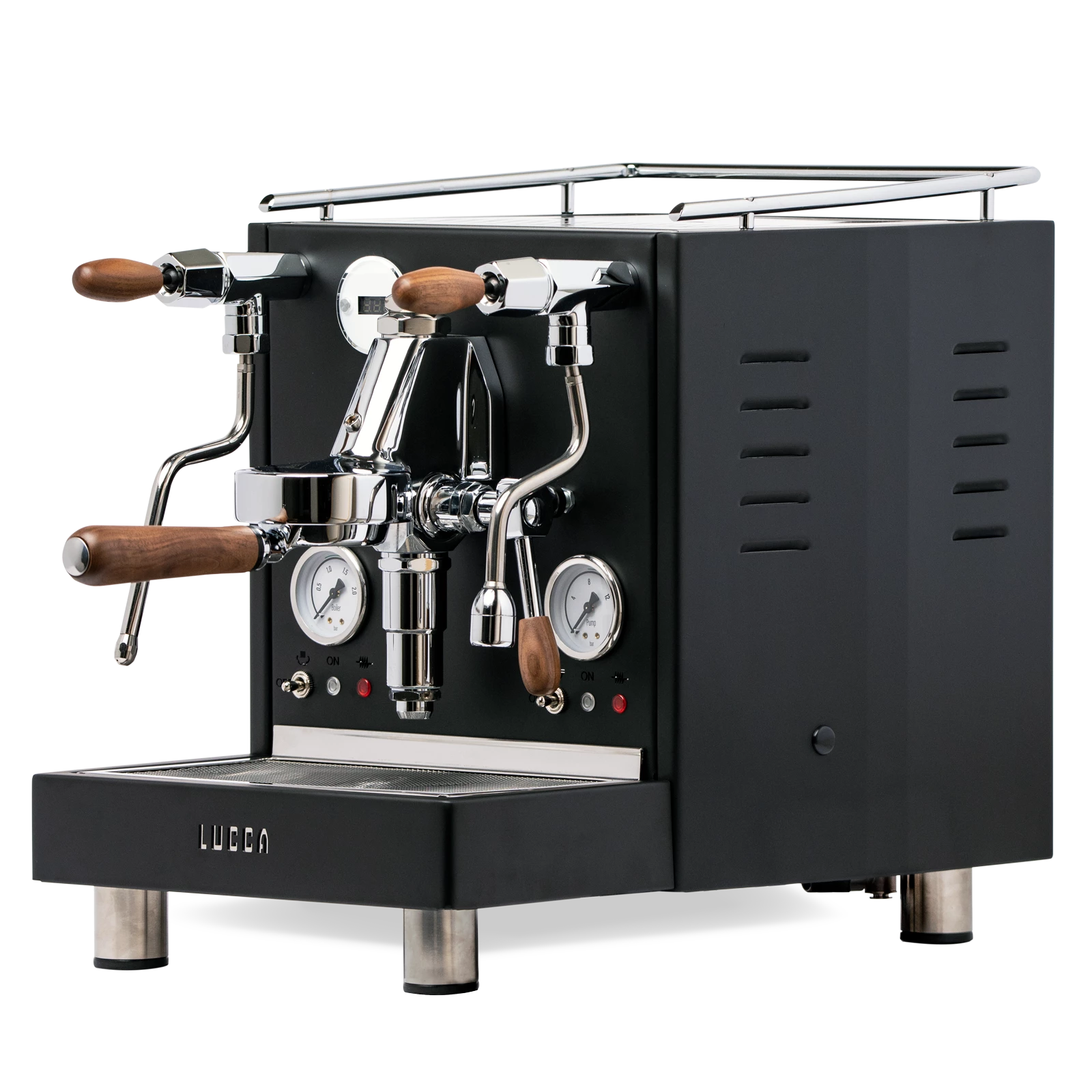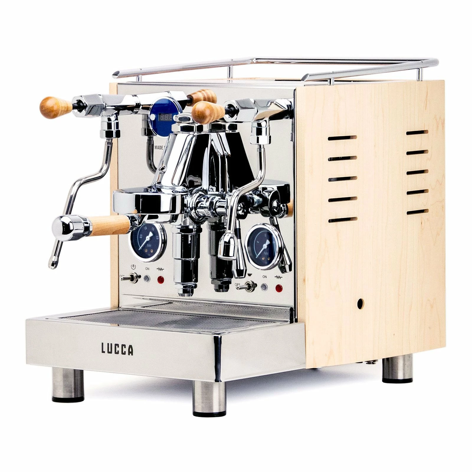 The LUCCA M58 is a stainless steel dual boiler, rotary pump, E61 espresso machine with a built-in PID and shot timer that can be direct plumbed or run on its built-in reservoir. Built exclusively for Clive by Quick Mill in Italy and customizable with handmade wood panels.