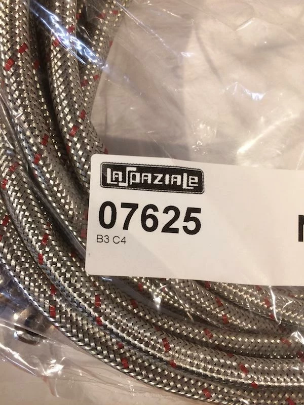 Braided supple line used for La Spaziale espresso machines. Line is 1/4 BSPP x 1/4 BSPP.