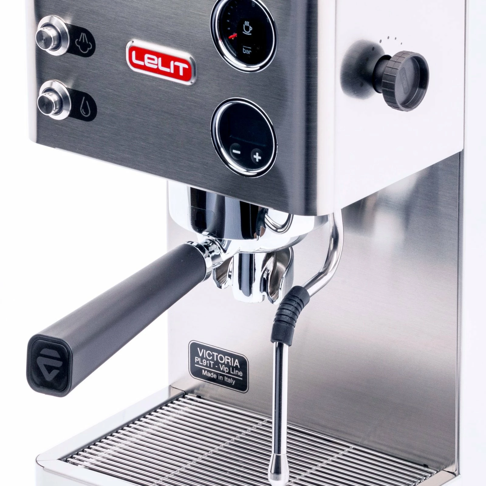 The Lelit Victoria is a single boiler espresso machine with a vibratory pump, a saturated group head, and a built-in PID. It runs on its 2.7-liter internal reservoir.